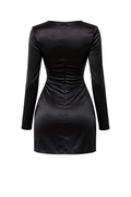 Black 3D Rose Deep V Mini Dress – Long Sleeve Satin Bodycon Party Dress