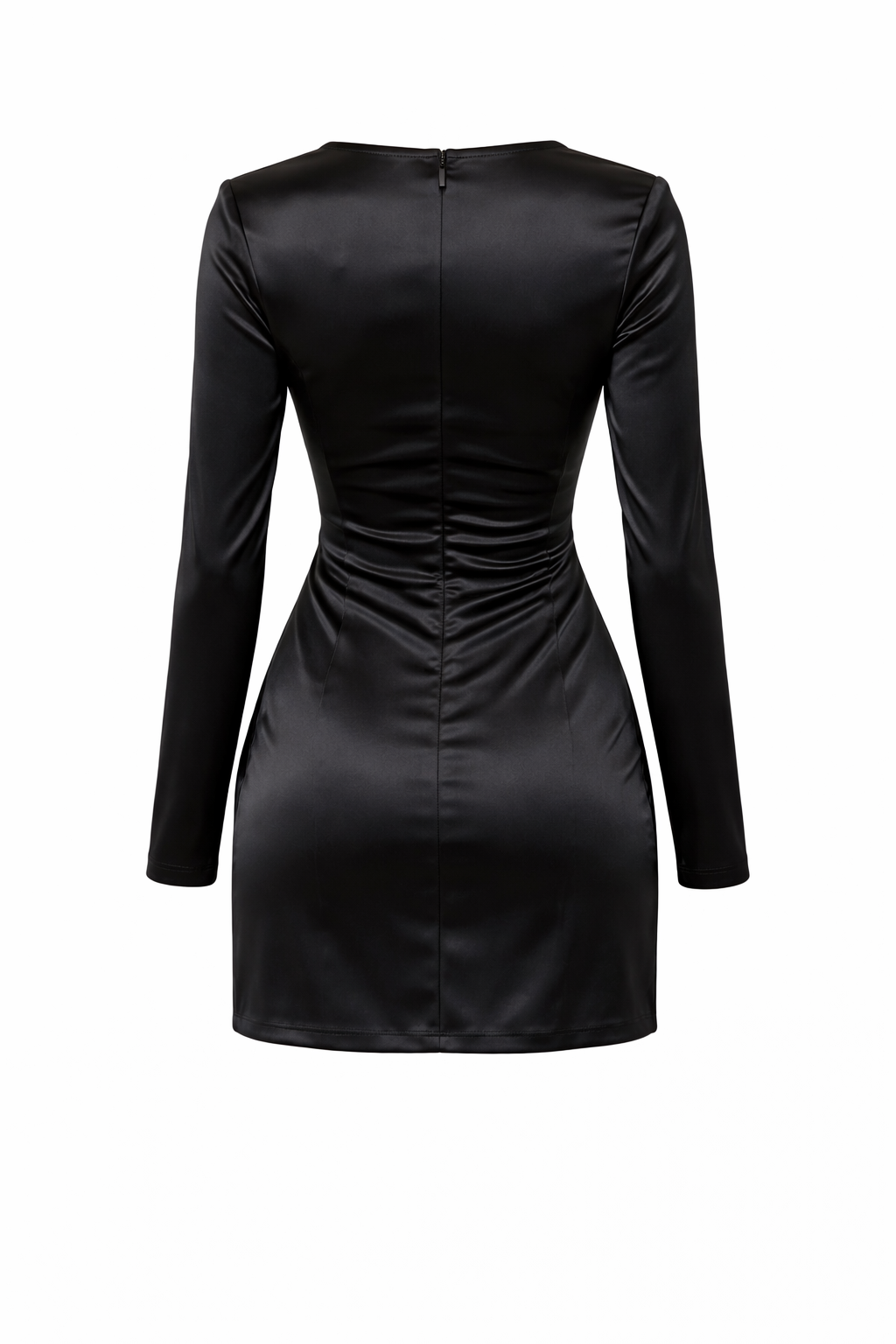 The tailored bodice sculpts the waist while the ruched skirt detail enhances your silhouette. A subtle side slit adds movement and allure, balancing elegance with modern sophistication. Long fitted sleeves complete the look, making it perfect for evening events, cocktail parties, and upscale nights out.