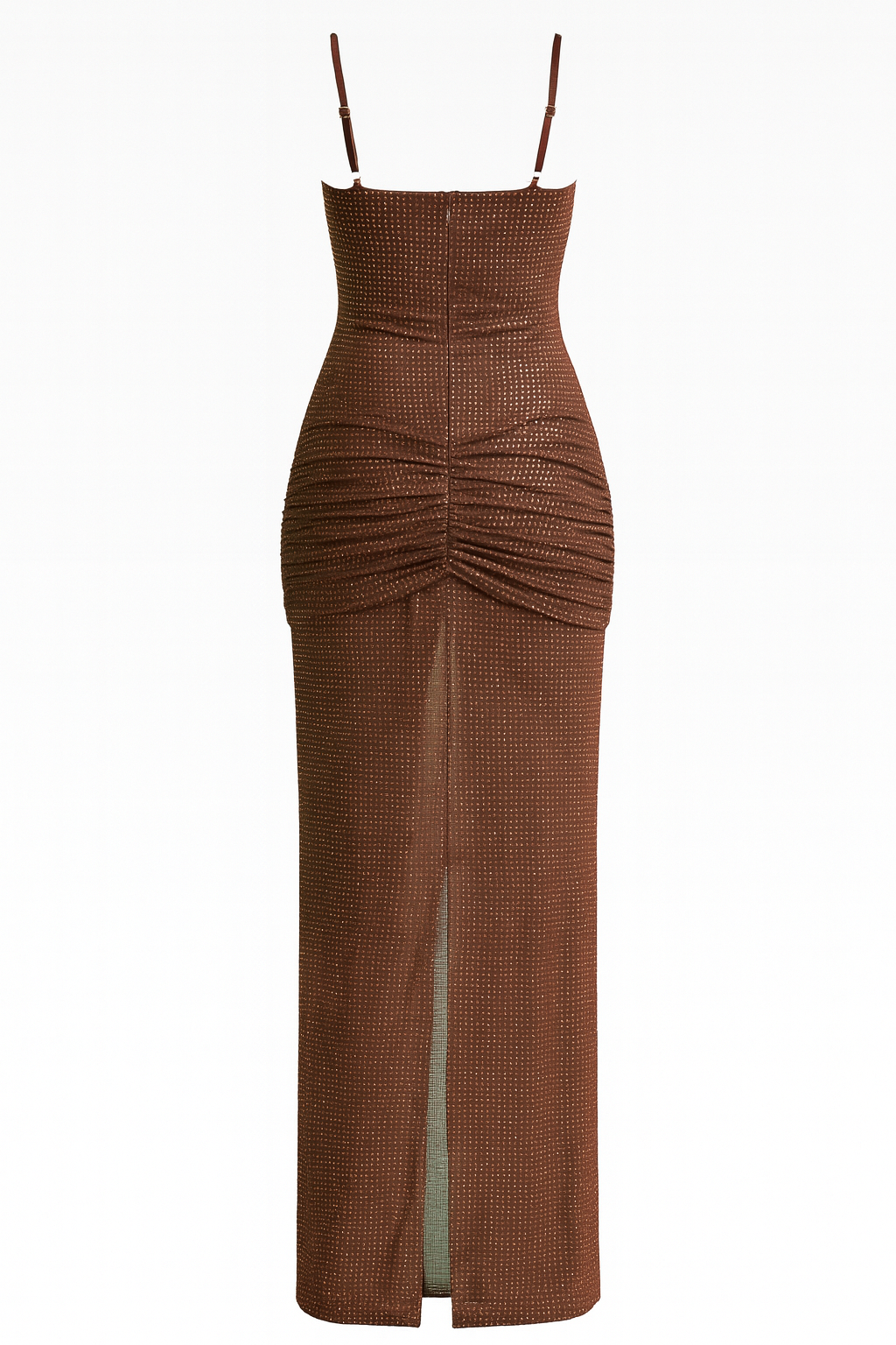 The Celeste Radiant Rhinestone Dress - Chocolate
