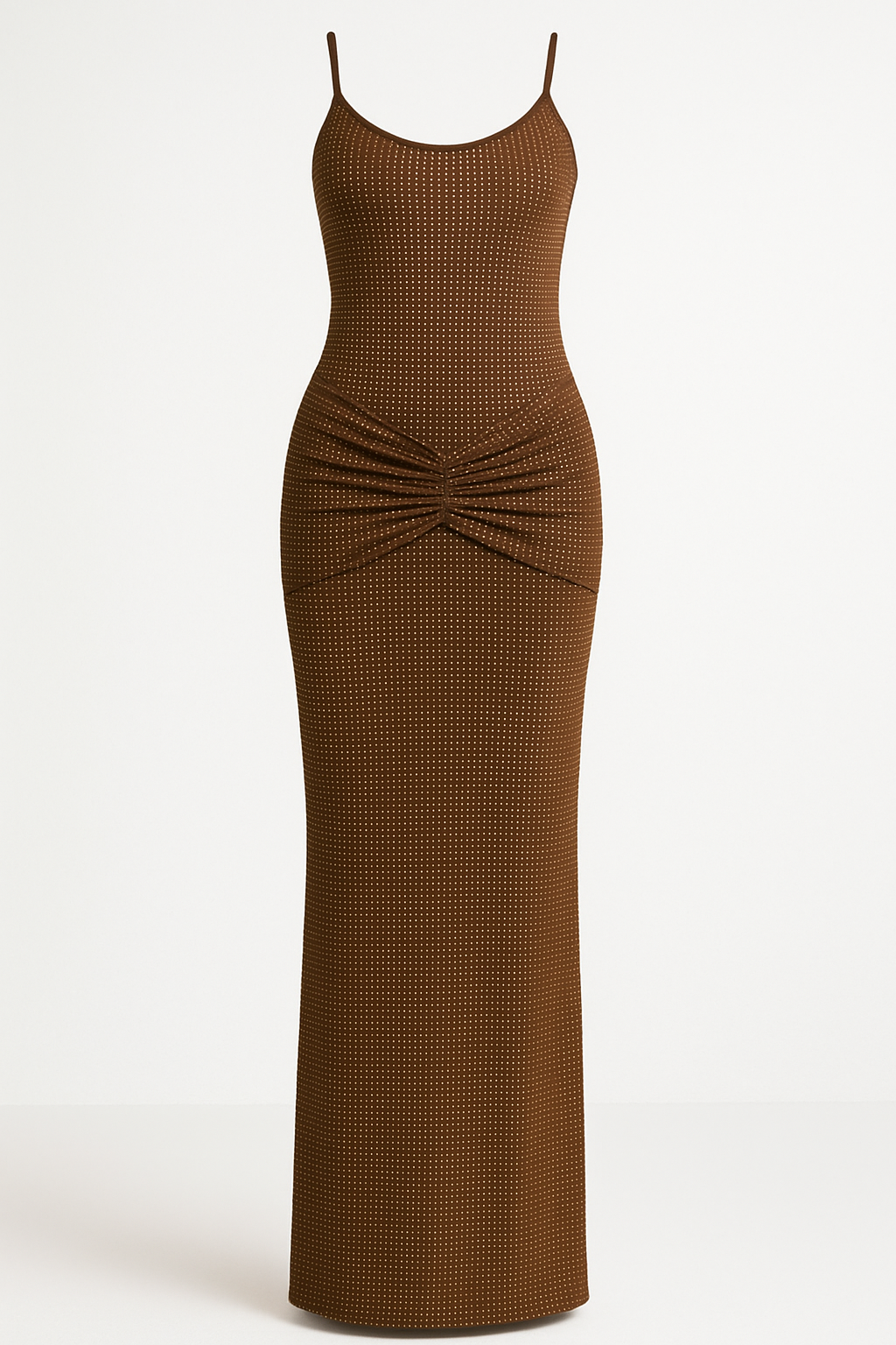 The Celeste Radiant Rhinestone Dress in Chocolate is designed to hug your curves in all the right places while catching the light with every move. Crafted in a rich chocolate brown with subtle shimmer detailing, this dress delivers effortless luxury with a sultry edge. The sleek silhouette, soft stretch fabric, and delicate straps make it perfect for nights out, birthdays, vacations, or any moment you want all eyes on you.