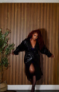 Midnight Luxe Faux Leather Trench Coat – Longline Black Statement Outerwear