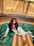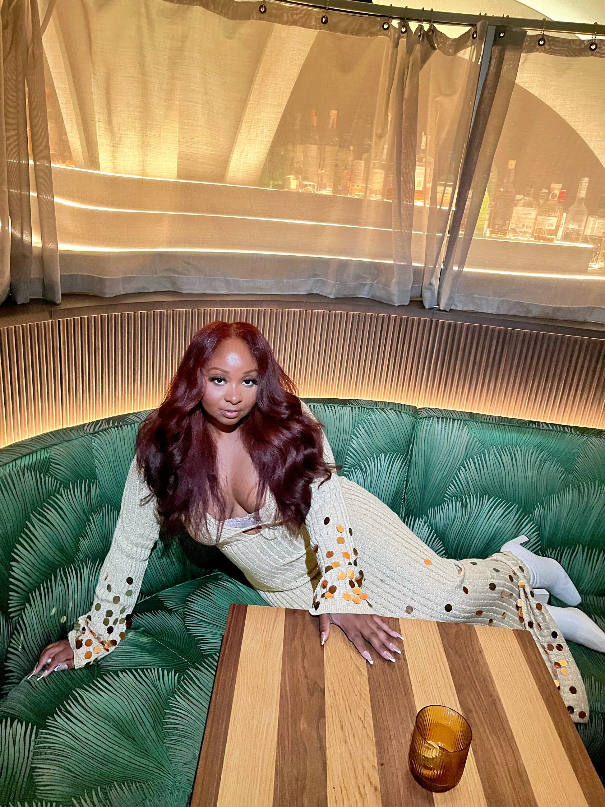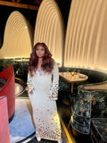 The hemline and bell sleeves are adorned with gold sequin detailing, catching the light with every move — perfect for evenings out, holiday parties, or upscale dinners. Its body-hugging drape elongates your figure while offering the comfort of knitwear, making it your go-to statement piece when you want to shimmer effortlessly.